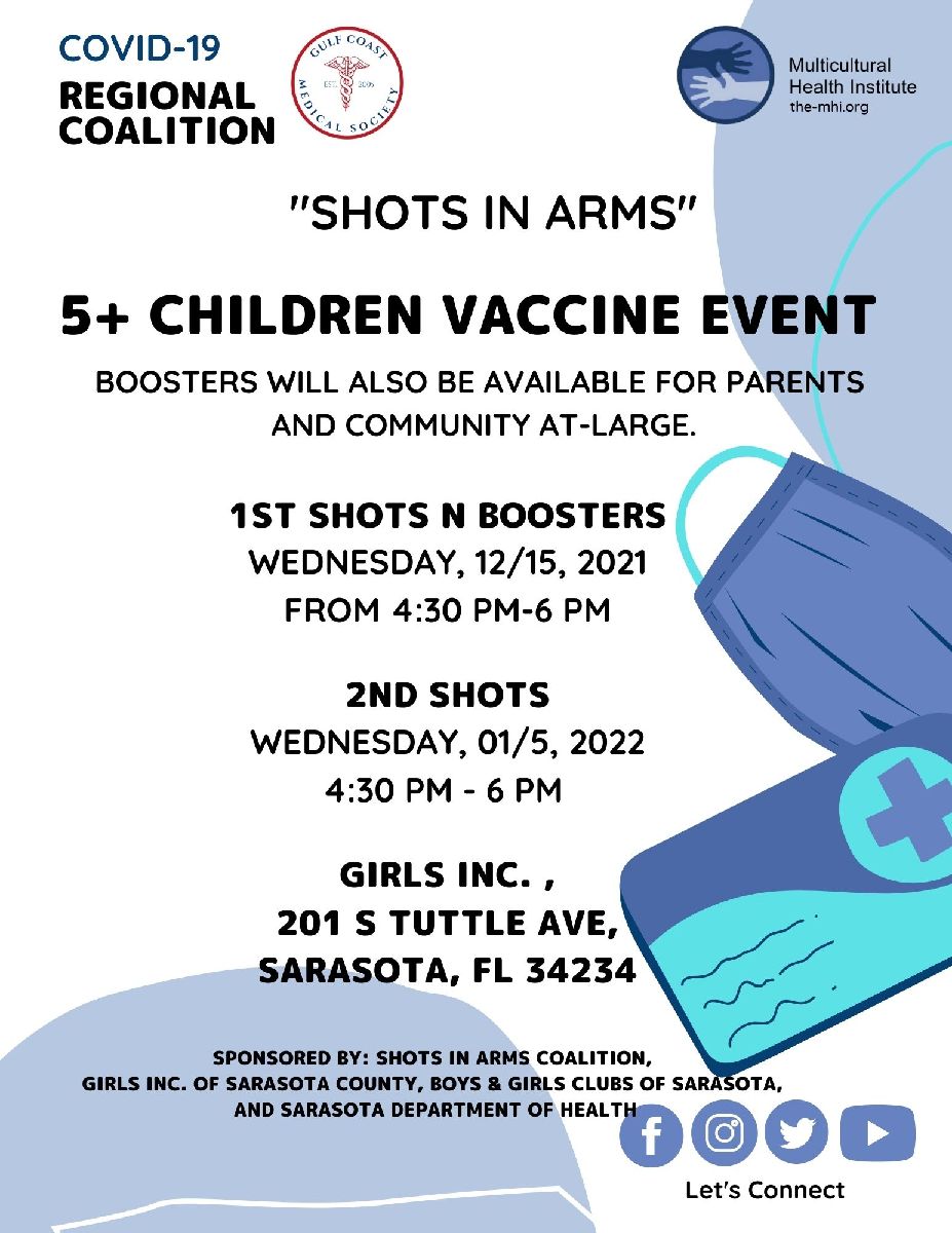 Shots In Arms Event for children 5+ Pfizer 2 shots will be given