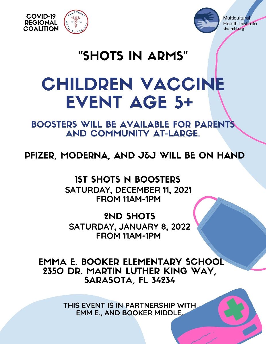 Shots in Arms: COVID Vaccines CHILDREN Ages 5+ & Adult Booster Vaccines (if qualified)